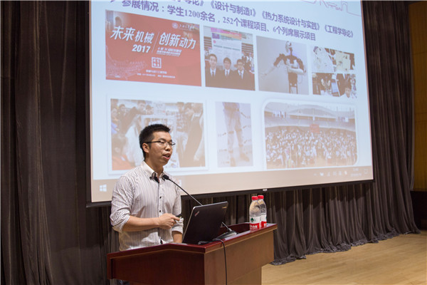 在高田会堂会场,首先由陈江平做“新时代学生创新实践能力培养”的主题报告。他以剑法入题,鼓励同学们不止于书本和老师的指导,在实践中突破自己。随后,他详尽地描述了学生创新中心建设的使命、愿景与基本原则,提出建设“世界一流”的工创中心,使其成为“科技领军人才的练武堂,工业界和大学的握手区”,并展示了创新中心对外合作的丰硕成果。他还结合新时代的发展特点,给同学们的成长提出了建议,希望同学们肩负国家振兴、民族振兴的责任,读懂自己,读懂天地,读懂众生,成为新时代所需要的人才。