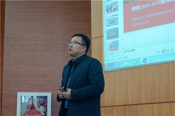 首先,由学院党委副书记顾希垚介绍学院2014-2018届本科毕业生的去向。他强调了大机械学科的重要性,分析了各专业本科生毕业之后的去向和去年的考研情况。