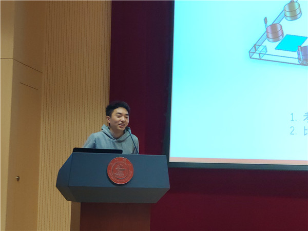 来自机械动力学院的严赫为到场同学们分享了参赛经验。他带领的队伍在上届机械赛中取得了学院第一、全校第三的好成绩。他为到场同学们提出了三点建议。首先,应适当减少小车机械臂的自由度,以增强机械臂的稳定性;其次,小车内部电路连接应简单明了,便于查错;最后,要注意保护小车的关键部位,防止比赛过程中因小车碰撞导致小车故障。