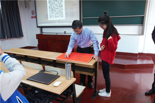 在嘉宾讲解过程中,同学们聚精会神,并不时进行讨论。在活动的最后,孟祥慧还为同学们送上寄语。