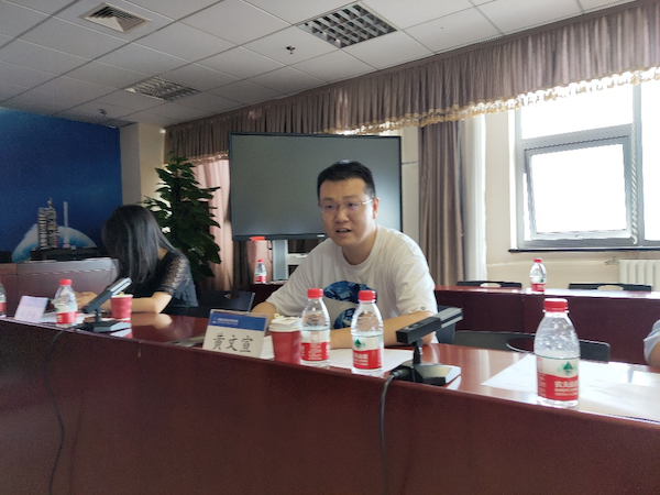 参观结束后,总体设计部的领导与交大的师生们开展了交流座谈会,出席活动的有人力处处长周东强、人力处副处长时光、热控技术研究室书记黄磊、供配电技术研究室书记王林涛、2017届研究生校友、结构与机构技术研究室主管设计师黄文宣。会议伊始,周东强介绍了总体设计部的情况。总体设计部是五院载人航天、空间科学与深空探测、太空态势感知、空间安全与在轨维护领域业务的责任主体和系统总体单位,是五院总体专业技术发展的责任主体。徐德辉介绍了实践团一行的人员构成及实践目的。在职业方向的选择上,黄磊给同学们提出了宝贵建议,方向要正、平台要大、专业要硬。交大校友黄文宣分享了个人工作经验,他肯定了总体设计部的科研资金充足、岗位培养模式灵活多样等优点,欢迎交大的同学投身航天事业。