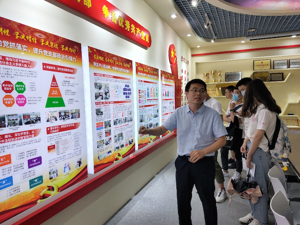 下午,实践团队参观了总体装配与环境工程部(后简称总环部)。总环部副主任刘广通为团队进行介绍,总环部由原院总装工程部、环境工程部(原航天五院511所)为主体合并组成,是集成航天器总装与专业测试、环境模拟试验与可靠性研究和设备研制于一体的技术实体。会后,刘广通向团队介绍了党支部文化,学党史、悟思想、办实事、开新局,完备的党政思想和制度体系保障了工作的高效完成。