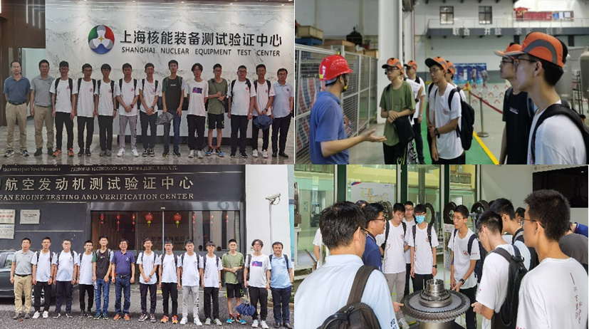 在民用航空发动机测试验证中心,中心负责人欧阳华研究员介绍了验证中心团队在相关领域取得的突破成果,实践团队了解了发动机的内部结构以及制造中的瓶颈技术。在上海核能装备测试验证中心,大家跟随顾汉洋教授深入实验工厂,参观阀门爆破、蒸汽泄漏检测等核反应测试实验装置,体会到基础学科和先进制造在航空发动机、核电装备等国之重器中的支撑作用。