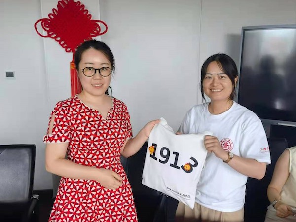 下午,实践团来到了一汽奔腾轿车有限公司。实践团成员首先参观了红旗文化展馆,深入学习了红旗的光荣历史和创新成果。随后,一汽奔腾运营管理中心人员管理科梁子默详细介绍了一汽奔腾的公司概况、运营情况和人才需求。在一汽奔腾的协助下,实践团有幸与交大校友张金凯进行座谈,张金凯详细介绍了在一汽奔腾的工作和生活情况,并与实践团成员进行了多方面的交流。陈俞婕代表实践团向张金凯赠送了校友礼包。