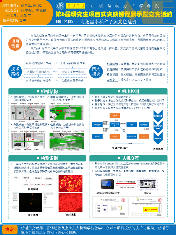专业学位研究生项目式实践课程《复杂机电/动力系统的设计与实践》,自2013年设立至今,已形成了完善的教学大纲、实践平台和教学师资队伍,提高了学生的实践和创新创业能力,课程项目成果得到了社会和企业的认可。未来,项目式实践课程将深入挖掘和对接企业、市场需求,拓宽交叉学科项目设计,以创新竞赛等为牵引,搭建学生创新产品孵化器,培育富有创新力及应用价值的高水平作品,进一步提升专业学位研究生的综合工程实践能力。