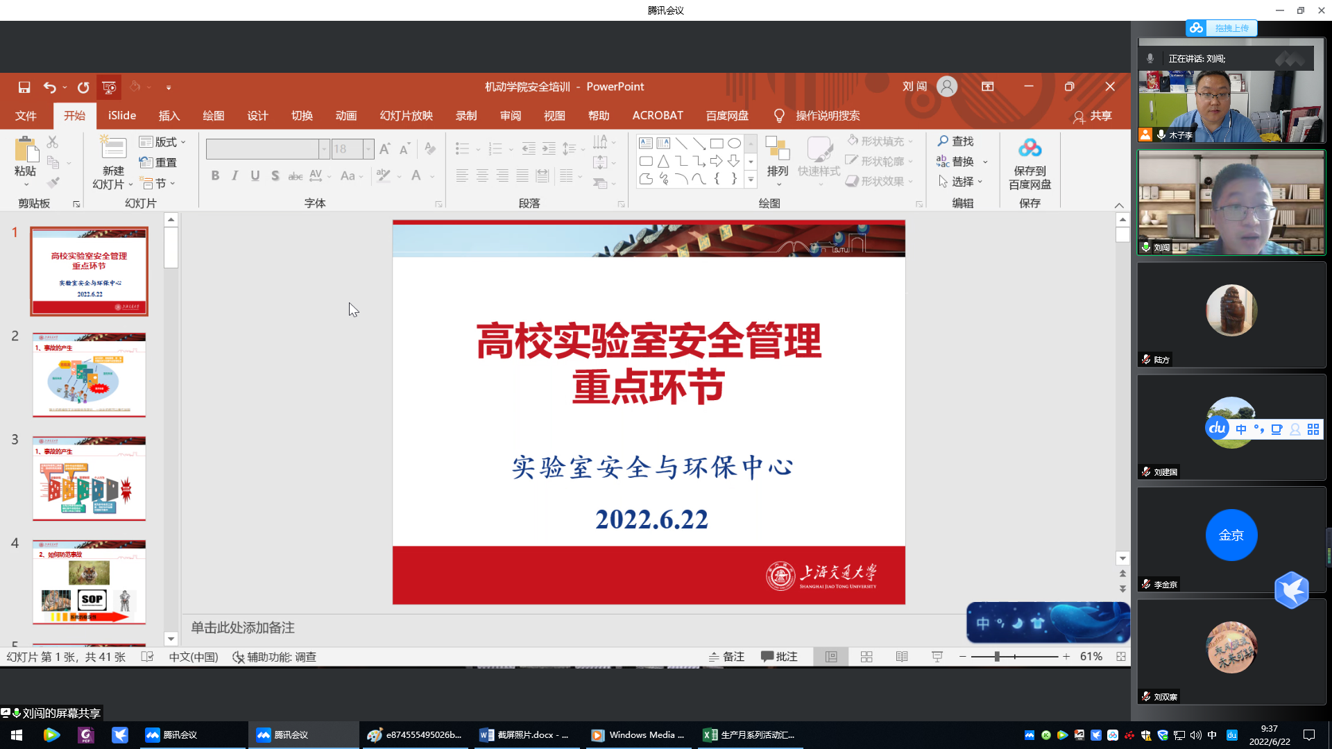 根据学校关于做好疫情防控期间实验室安全工作的相关部署,结合“安全生产月”活动要求,365英国上市公司官网6月22日召开实验室安全专项培训会,邀请校实验室安全与环保督导组组长张明、实验室安全与环保中心综合事务办公室刘闯作专题培训,学院全体实验技术人员62人线上参加了活动,培训会由学院副院长瞿叶高主持。