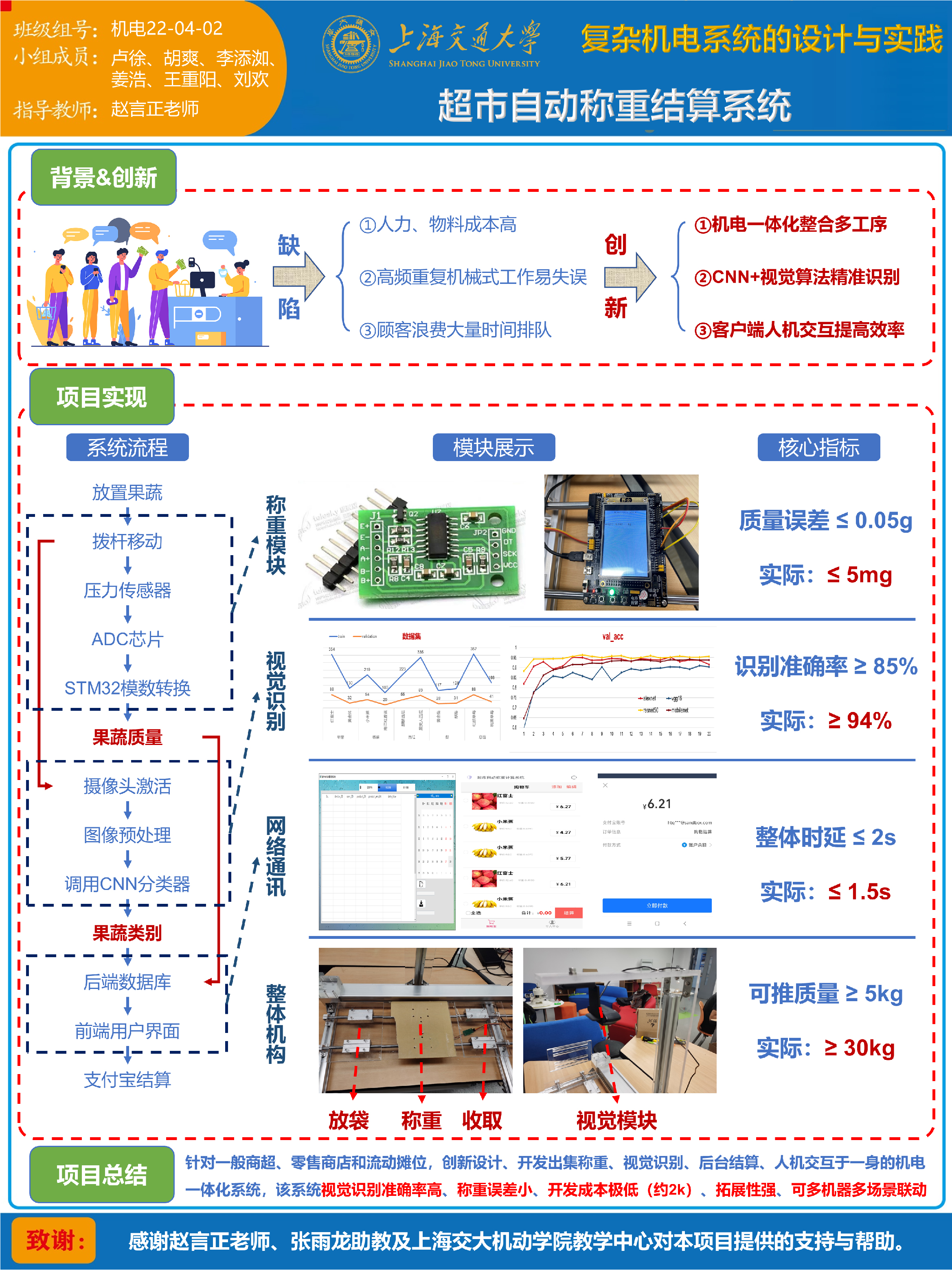 超市自动称重结算系统 | 胡爽,刘欢,姜浩,李添洳,王重阳,卢徐 | 赵言正 | |