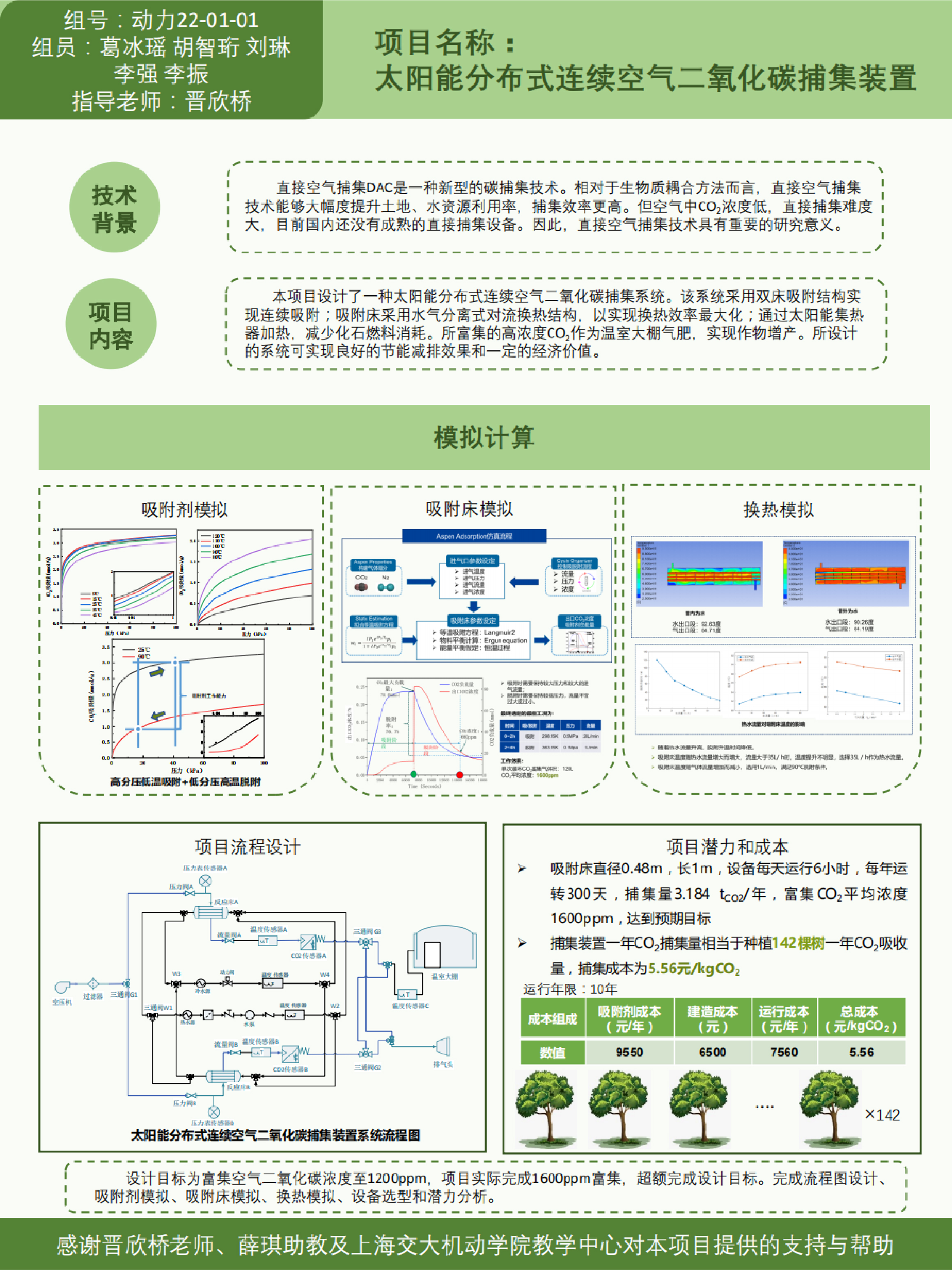太阳能分布式连续空气二氧化碳捕集装置 | 葛冰瑶,胡智珩,刘琳,李强,李振 | 晋欣桥 | |
