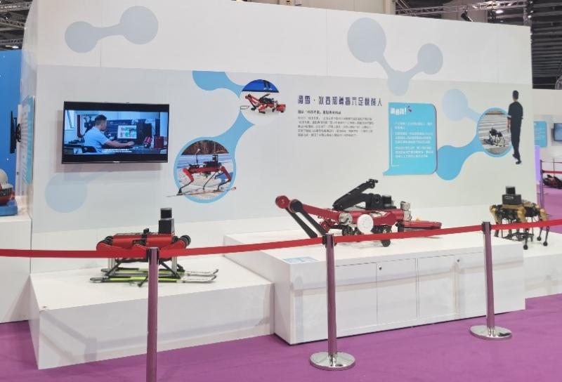 图2 滑雪、冰壶、导盲三款六足机器人在智能科技展区展出