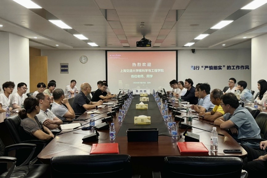 实践团与苏州热工院安质环技术中心党总支进行了座谈交流。苏州热工院安质环技术中心党总支副书记王坚、组织委员朱荣旭等参加了座谈会。校友方闻韬介绍了苏州热工院的总体情况和核心业务。核学院教工党支部书记熊进标介绍了核学科最新的发展情况。朱荣旭和李相越分别介绍了苏州热工院安质环技术中心党总支和核学院研究生党支部的特色。