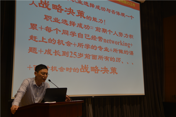 首先,阮海涛以“融入生活的激流”为主题回顾了近年来就业情况的变化趋势,结合学校的精神,对研究生前往国家重点单位就业做了动员,重点分析了第一份工作选择的战略方向应该结合哪些因素来确定的问题,列举了职业选择成功的典型案例。此外,他结合历年研究生求职过程中遇到的典型问题作了讲解,分析了学生生涯和职业生涯过渡期应该注意的问题。另外他还解读了一些创业方面的问题。