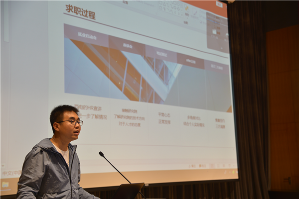 杜冬从个人经历出发,向大家介绍了自己当初的求职和工作情况,并围绕“家国情怀”,“职责所在”,“身体第一”三个方面展开,鼓励大家将自己的选择与国家民族的根本需要结合起来,同时,他提醒同学也要注意自己的身心健康,创造精彩的人生。
