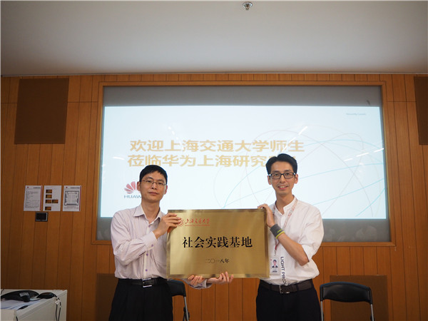 座谈会后,阮老师与华为上海研究所的领导人员进行了365英国上市公司官网社会实践基地的揭牌仪式。华为上海研究所欢迎和期待未来有更多的新鲜的血液和优秀的交大同学们能够加入华为,来此实践、实习和工作。