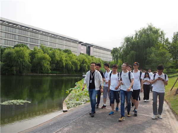 随后实践团参观了华为的园区。华为上海研发中心的楼是亚洲最大的单体建筑,由设计过金茂大厦和迪拜塔的美国SOM公司完成。华为园区仿照中国的自然风貌设计,从西北的落叶林,到东部的小桥流水,尽收园区。漫步其中,可品池荷跳雨,水心云影,草际烟光,林间风韵。在这样的园区工作,想必十分快乐。