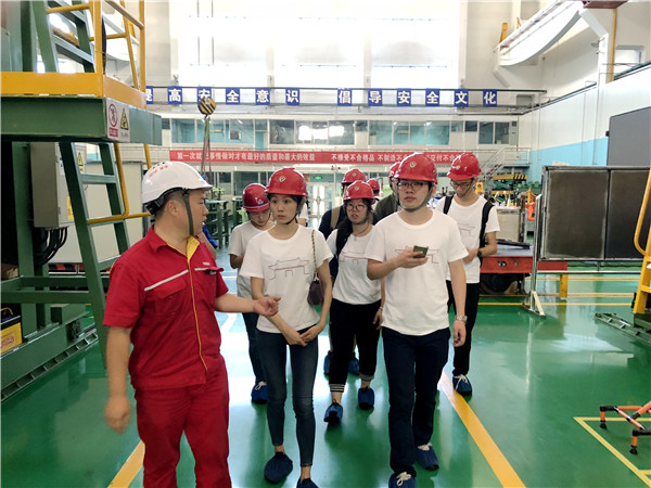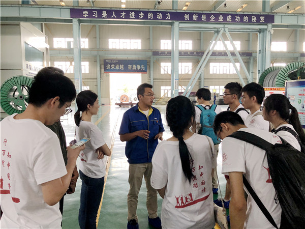 7月25日上午,特变电工的工程师带领实践团成员参观新缆厂和新变厂车间。一进入特变电工的车间,整洁规范是现场给实践团成员们留下的最深刻的印象。实践团成员需要穿上鞋套、戴上安全帽(个别车间甚至需要除尘)才能获准进入。实践团参观了新缆厂的特缆车间和交联车间、新变厂的220千伏、750千伏、1100千伏车间和超高压展厅,主要覆盖了特变电工电缆、变压器两部分产业。