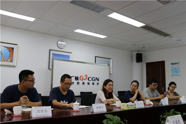 7月2日,实践团一行来到中广核工程公司参加校企座谈会。中广核集团校招办主任张书杰从中广核的创建历史、发展历程、产业布局、创新引领、人才培养、组织管理等几个方面做了详细生动的介绍。中广核十分重视人才培养,在大亚湾核电基地创立初期就将113名学员派往法国培训,当年人均培训费用达到130万法郎,这个费用可以打造等身黄金人。这113个“黄金人”回国后从基层技术人员做起,现在已经成为中广核集团的核心骨干。他们的故事激励着一代又一代中广核员工不忘初心、砥砺奋进。现在的中广核员工在上岗之前,必须经过相应的培训,通过考核之后,才能过的工作授权,进而上岗工作。张书杰强调,发展核电最重要的是安全。运营人员严格执行“三段式”沟通,执行指令时,有专人监护操作,确保万无一失。介绍结束后,郭莉代表实践团对中广核周到安排和热情招待表示感谢,通过两天的交流学习,实践团全体师生收获颇丰,中广核人才培养模式也值得借鉴。随后,实践团的同学们对中广核新员工的培养方向、招生专业、新能源行业的发展状况、核能技术等方面进行提问,张书杰给予了耐心细致的解答。