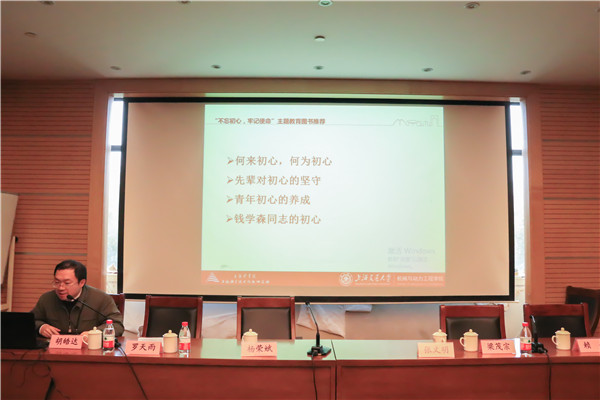 揭牌仪式后,胡皓达推荐了“不忘初心,牢记使命”主题教育图书。胡皓达从主题教育出发,围绕革命先辈们对初心的坚守、青年初心的养成、交大学长钱学森的初心等主题,向参与活动的师生推荐了数十本优秀读物。胡皓达分别对这些优秀读物进行了介绍,并与现场学生互动交流。