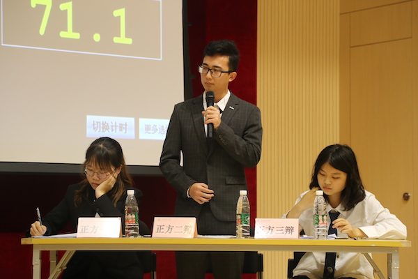 随后,表演赛正式开始。来自学院辩论队的正反双方6名辩手围绕“若人有死亡轮回,且不需要消除记忆,这是一件可喜/可悲的事情”的辩题展开激烈辩论。正方从携带记忆的轮回可以让人体验生活的更多可能性这一论点出发,引用《三体》等著作中的内容加以论证;反方则从轮回会导致社会思维固化、犯罪无法约束等角度进行反驳。双方旁征博引、唇枪舌剑,表现了敏锐快速的思维和逻辑严谨的思辨,向观众们充分展示了辩论的魅力。表演赛在热烈的掌声中落下帷幕。