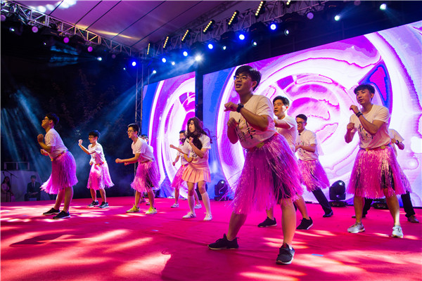 辅导员、学神学霸俱乐部成员反串出场,携手班主任们在《创造101》的旋律中亮相,为同学带来惊喜的同时,也将晚会推向了高潮。