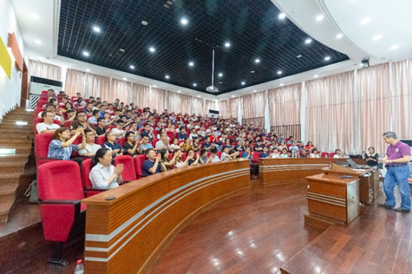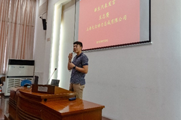 张文光作为教师代表发言,希望同学们将学习当成兴趣爱好,不仅要学习到相关的知识,更要获得学习知识的方法和能力,将学到的知识与工作实践更好地结合,做到“知行合一”。