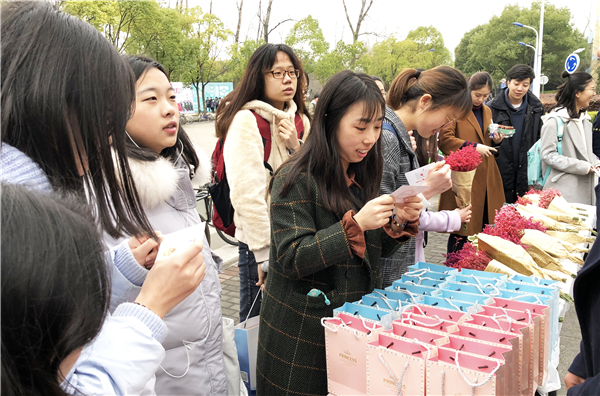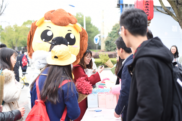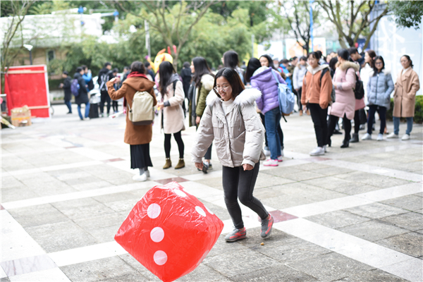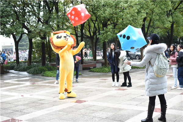 中午,机械动力学院在东转的女生节摊位人头攒动,学院吉祥物“锤锤”抱着大骰子等待女生们到来,白玫瑰做成的实体花墙,吸引了许多女生驻足欣赏。鲜花,巧克力,口红,机动的女生们为了能够获得奖品都跃跃欲试。女生们只要两两投掷骰子,胜者便可进行抽奖,获得学生会精心准备的女生节礼物。简单却不失趣味性的活动形式,让在场的女生很快融入到了活动中来,收获了满满的温馨与快乐。