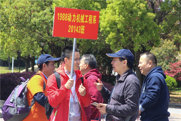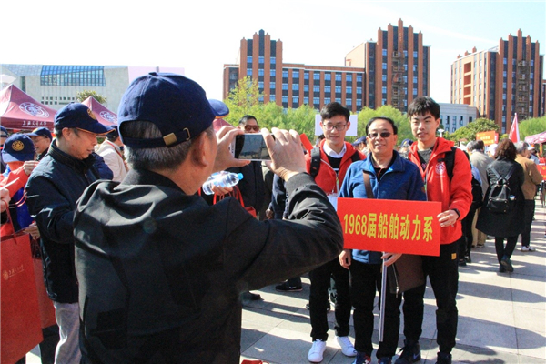 志愿者们带领校友领取物资、引导校友们在食堂体验午餐。中午12点,校友们在志愿者的陪同下来到机械动力学院合影留念,并参加丰富的校友活动,志愿者们全程跟随,细心讲解,耐心解答校友们的疑问。
