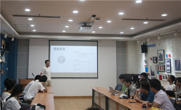 随后,通过考研成功录取本校机械工程专业的陆煜同学向低年级同学介绍了自己考研的心得。他分别从英语、数学、政治、专业课几方面对于备战考研提出了一些建议,也列出了相关推荐书目。同时他也强调考研过程中信心的重要性,并用自己的奋斗故事激励了在座所有人,他说“你如果考研坚持下来的话,真的会有一种从以前懒散的自己脱胎换骨的感觉”。