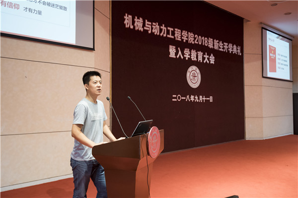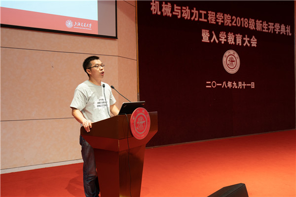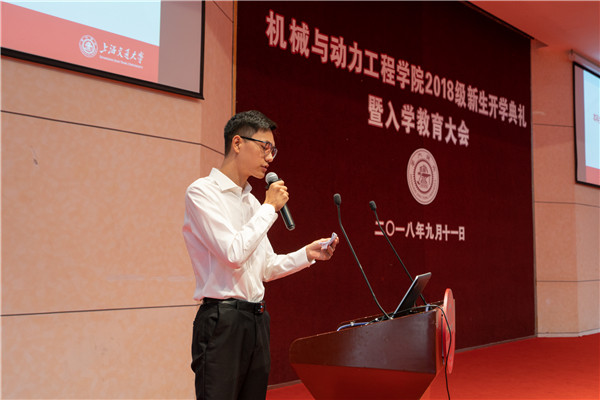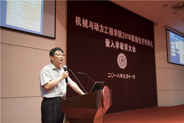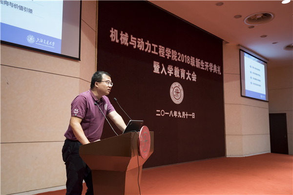 顾希垚介绍了机械动力学院2018级本科新生概况。针对在座的新生,他在讲述学院本科生课程体系的同时,指出了学业成绩的重要性,以学院优秀学生为例,鼓励同学们努力学习。最后,顾希垚强调了机械动力学院对人才培养及价值引领的重视。