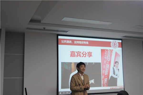 10月30日晚,“ME有为”大讲堂第一讲——公共演讲和主持专场在机动学院F210会议室举办。此次专场邀请到了校学生联合会副主席李有和校主持人协会会长、励志主持人团团长蒋钰两位嘉宾到场分享。研会主席闫晓燊代表研会对两位嘉宾表示欢迎,感谢他们的精心准备,并希望到场的所有同学都能有所收获。
