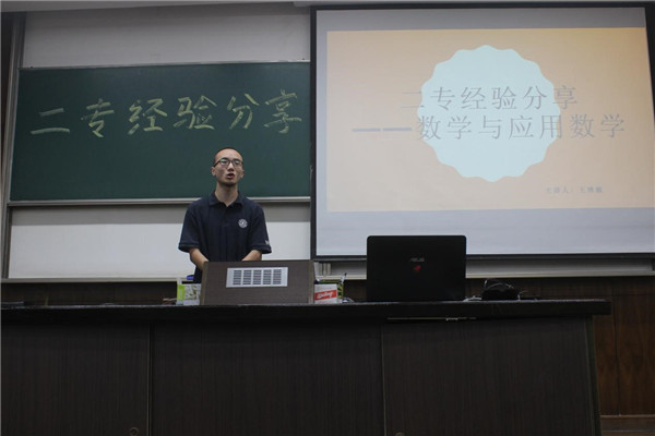辅修数学的王博源学长主要从招生计划和往年录取情况对二专做了整体介绍,然后从数学二专的课程入手,介绍二专学习与一专学习的不同和选择二专的理由。
