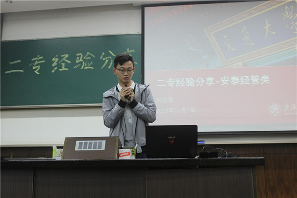 辅修金融二专的何立宏学长主要针对经管类二专,介绍了选择原因,培养计划以及学习收获,并给出了自己的建议。