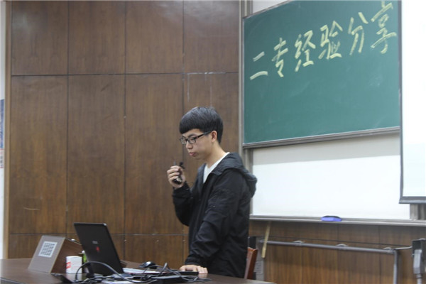 11月7日下午,由365英国上市公司官网学神学霸俱乐部和学院学生会学术中心联合举办的二专经验分享会在东中院2-305举行。学神学霸俱乐部主席诸麟榆、四位主讲嘉宾王博源、何立宏、胡杰民、马麟以及学生会学术中心成员出席,会议由学术中心成员张夏主持,现场有近百名同学聆听了此次分享会。