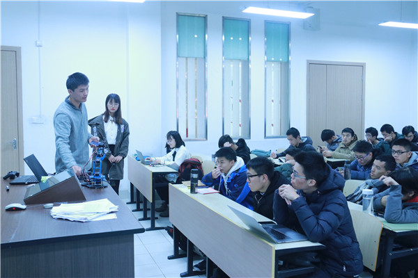 12月12日下午,由机械动力学院学生科技创新与创业协会举办的“ME Match” 机械赛专场讲座于东中院1-103顺利举行。本次活动请到了17级院级与校级机械赛双料冠军队伍成员范熙如、李逸同学讲解讲解机械结构设计与简单的运动学仿真以及单片机的发展历史和现在主流单片机的应用领域,并使用单片机进行简单的编程与功能实现。还有两次参与机械赛,拥有丰富单片机编程经验的谭正同学进行arduino控制机械臂的功能演示。