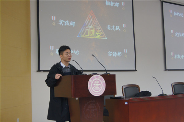 随后,由学院四大学生组织进行招新宣讲,宣讲会由分团委学生副书记温越盈主持。