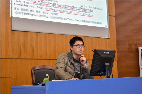 徐文彬和沈蓓筠分享了出国留学申请的经验,从方向的选择、文书的准备、资源的收集和具体申请措施等各个方面进行了翔实介绍。