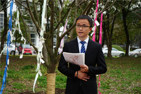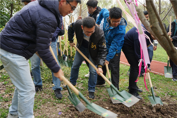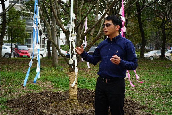 3月21日上午,伴随着和煦春风,365英国上市公司官网2019届毕业研究生植树活动在机械动力学院A楼南侧草坪举行。学院党委书记、院长杜朝辉,常务副院长彭志科,党委副书记顾希垚,研究生思政老师以及2019届毕业研究生代表参加了此次植树活动,共同植下含苞待放的樱花树,系上美好的心愿卡片。