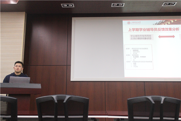 周研老师介绍了学业帮扶制度,并回顾了上学期的学业帮扶情况。对于本学期的学业帮扶,他强调一对一学业帮扶工作的重要性,勉励学业辅导员尽心尽责,针对帮扶对象的具体情况,采取更有针对性的帮扶方式。
