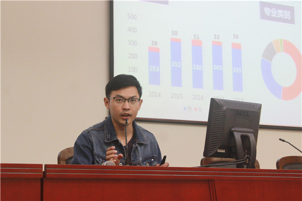 赵航对同学们的就业选择进行了指导。对2014-2018年机械动力学院本科毕业去向情况做了详细介绍。还分别对每个专业的就业形势做了汇报,并横向对比了国内几所名校的毕业生就业去向,引领同学们合理规划自己的未来就业安排。
