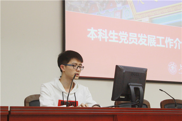 刘宇森介绍了本科生入党的相关问题。他向全体同学介绍了党员发展流程,详细说明了从递交入党申请书,成为入党积极分子,到成为预备党员,直至转正的各个阶段需要做的事情。他鼓励同学们积极向党组织靠拢,希望同学们能为党的事业做出贡献。