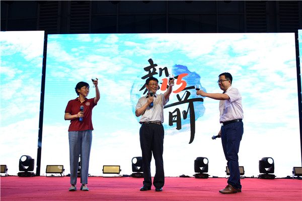 接着,顾希垚、杜朝辉、孟雁为全体毕业生致祝酒词,大学四年寒来暑往,终将成为难忘的记忆,希望2019届毕业生在未来能一帆风顺,鹏程万里。