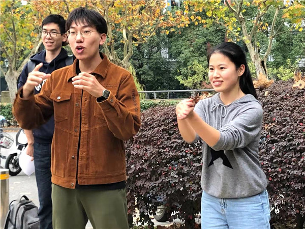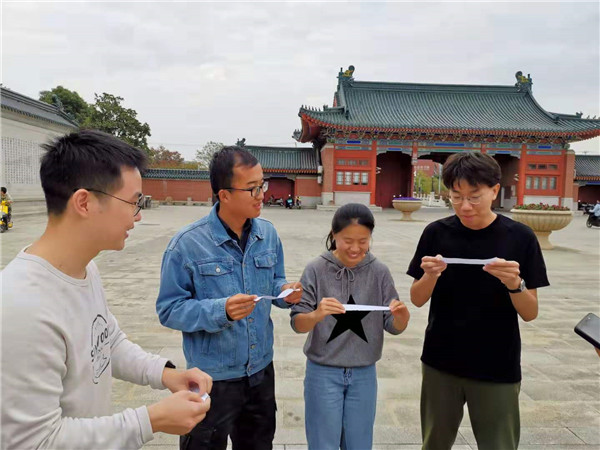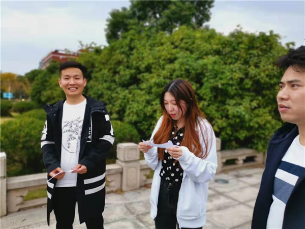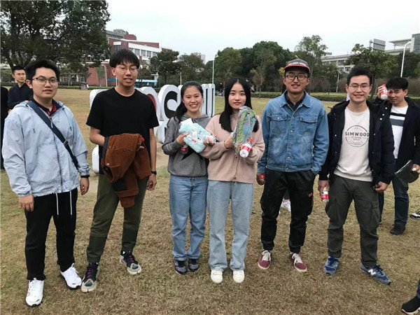 下午两时,36名同学组成的八支队伍在机动大草坪前准时集合。首先各组在主持人的带领下进行了开场暖场游戏——“冬日取暖,我们一块”,充满欢声笑语的游戏中,各位同学相互熟悉,配合也逐渐默契。经过短暂而充实的暖场之后,主持人一声令下,各组同学同时迅速出发,前往六个打卡任务点进行各个精彩纷呈的游戏。