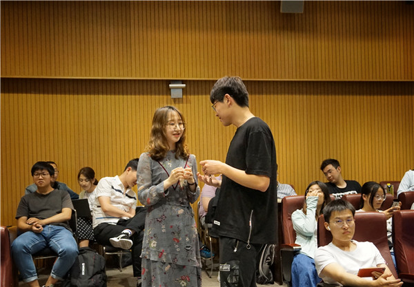 在讲座过程中,还穿插了很多互动交流环节。上台同学的精彩发言博得了大家的掌声,全场互动更是把讲座气氛推向了高潮。通过互动练习,同学们加深了对人际吸引奥秘的理解。