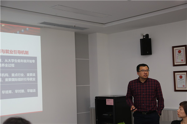 顾希垚汇报了研究生就业引导工作。他谈到,校领导高度重视毕业生就业引导工作。通过对比学校和学院研究生的就业数据,他从就业单位、就业地域、博士生学术岗位就业等多维度分析了学院研究生就业的整体情况,强调了导师在就业引导中的重要作用。他指出,要切实加强导师的合力育人,提升研究生赴国家重点行业和学术领域就业的比例。