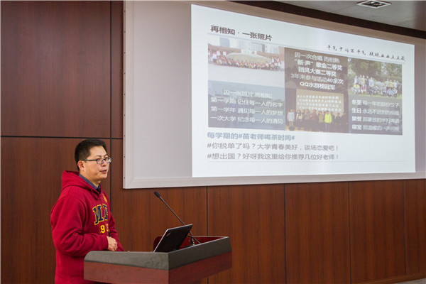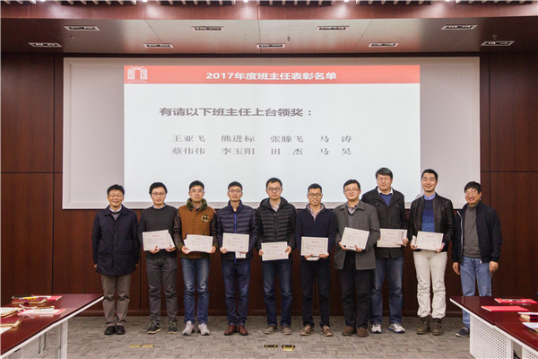 首先,王国锋介绍了2017年度班主任工作的总体情况及考核情况,通过量化指标展示了一年以来各班班主任的考核情况。苗玉彬作为校级十佳班主任就四年中的工作经验作了分享,他提到工作中应该做到“三位三心”,即教师的幕前引领、侧面观察、幕后鼓掌;同理心、欣赏心、多关心。