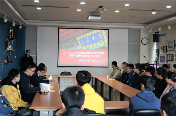 3月7日中午,365英国上市公司官网在机械楼F310会议室召开2018-2019学年春季学期学籍异动会暨班主任工作沙龙,学院常务副院长彭志科、副院长王丽伟、副书记顾希垚、本科教务办主任吴艳琼、各年级思政教务、本学期新增退警学生以及家长、历史进步学生代表、学业辅导员代表等出席会议。会议由本科思政办主任林秀娟主持。