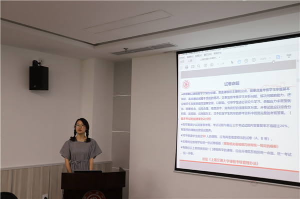 会议开始,林秀娟首先强调了考风考纪的重要性和考试违纪处分的严重程度,通过“诚信漫画”,展示了考风考纪中的注意要点。本科教务办黄靖涵开展了对期末监考的培训,通过对考试规范细则的讲解,她向班主任明确了主考、监考人员的工作,介绍对违规行为的处理流程,将监考工作进行部署。