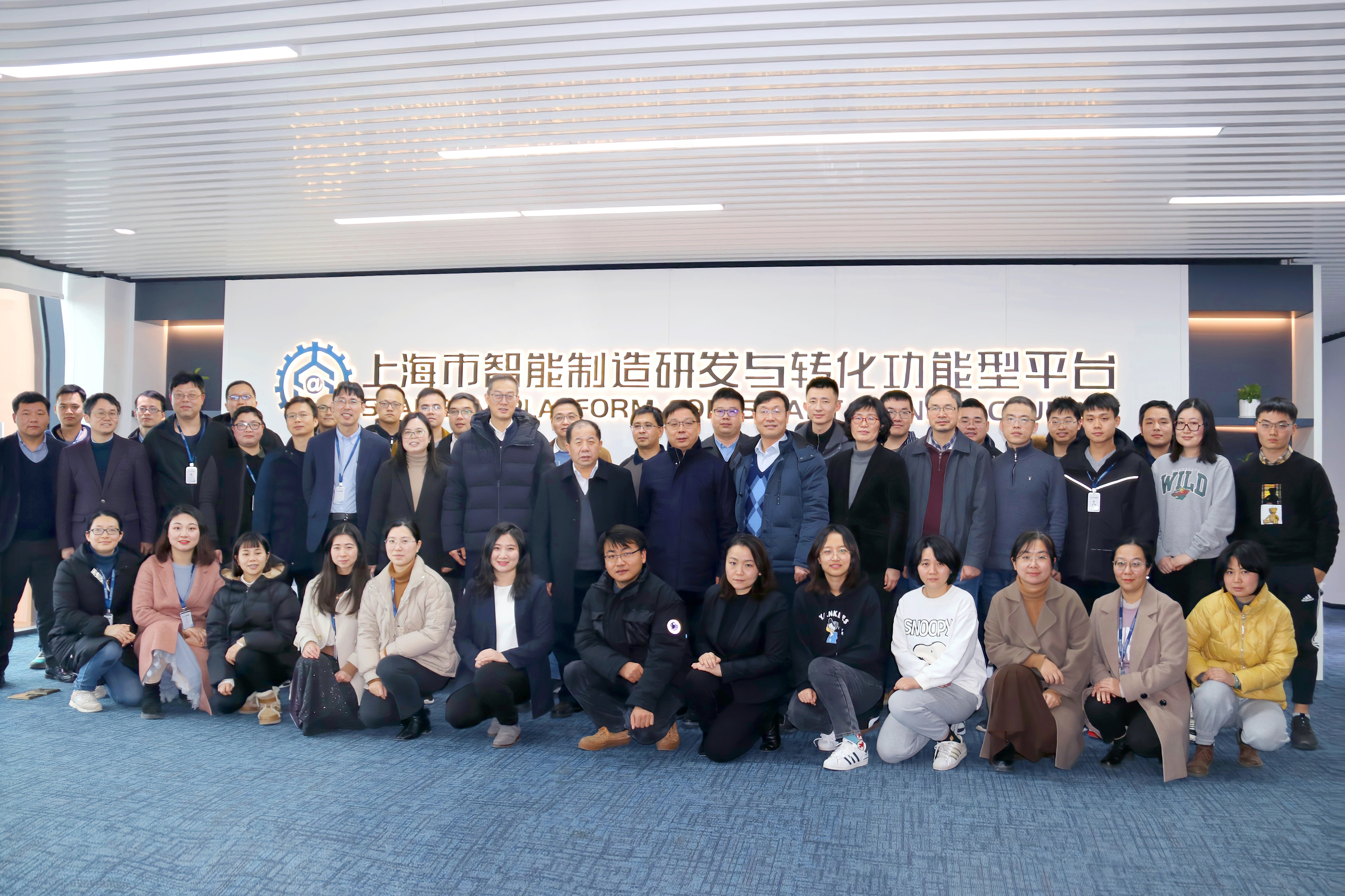 上海市智能制造研发与转化功能型平台总经理习俊通、副总经理赵勇,各团队技术负责人高峰教授、来新民教授、姚振强教授、赵万生教授、李永兵教授、顾汉洋教授,以及团队与公司的运营负责人和工作人员陪同介绍。