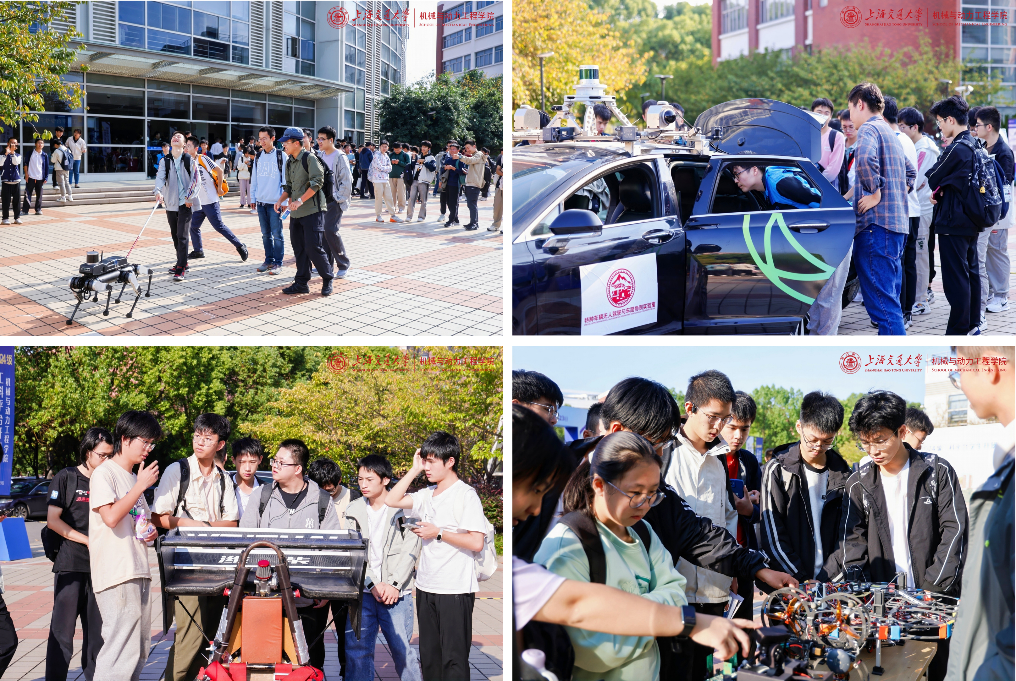 新生们还参观了机器人研究所,振动、冲击、噪声研究所,前瞻交叉研究中心,新能源动力研究所等实验室,深入了解了学院的教育资源和科研环境。活动体验区展示了学院在机械设计、动力系统、自动化技术、智能制造等多个领域的创新项目,包括突破人机交互技术、助推盲人“无碍”行走的“导盲六足机器人”,可携带四足机器人并协作完成环境探索的无人机Dragon Rider,国内首个面向露天水泥矿山的无人驾驶运输系统,以及学生自主设计和制造的、能在赛道上高速驰骋的高性能赛车C39。大家近距离观摩了科研成果,亲身感受了科研的魅力。