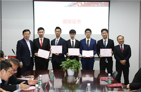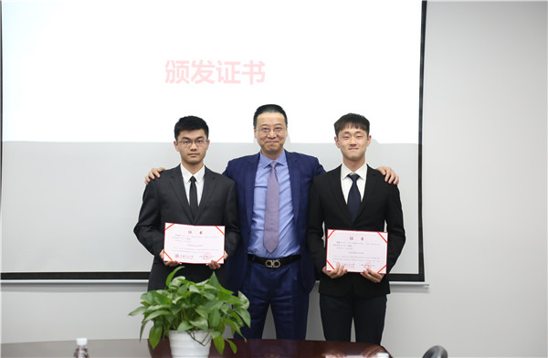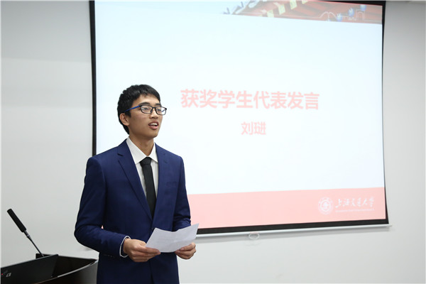 获奖同学代表刘琎作主题发言。他总结了自己本科三年半以来的科研生涯,指出自己取得成就的法宝在于不断培养发现问题、解决问题的能力。表达了对于学校栽培、企业鼓励的感谢后,他表示日后会继续砥砺前行,和同学们一起成为有用的交大人。