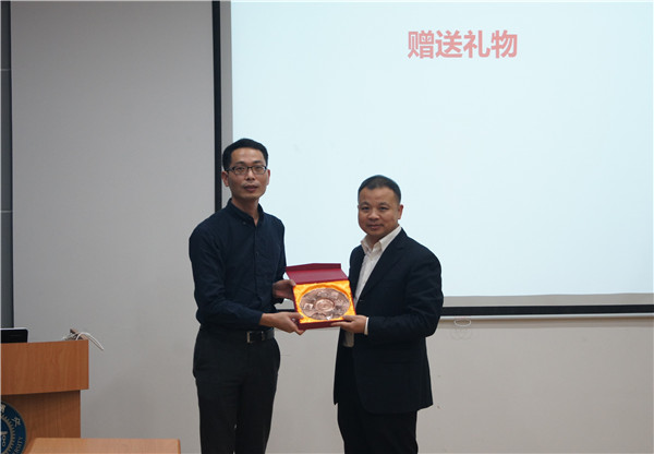为了对中国核动力研究设计院表示感谢,盛鑫军代表学院向企业嘉宾赠送礼物。